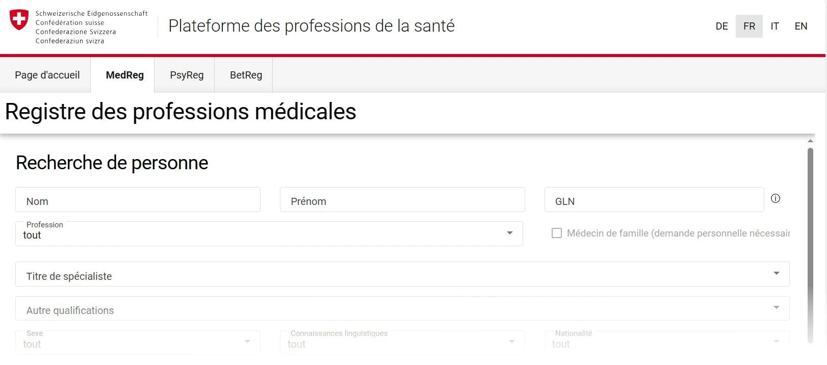 Ce site vous permet d’accéder au registre MedReg qui contient des données sur les professions médicales universitaires ci-après :